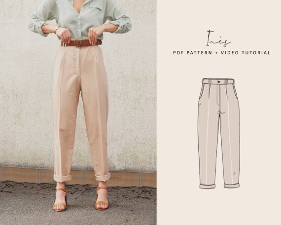 Ines High Waisted Trousers Digital Pattern Uk 4 24 Us 0 20 Etsy Canada