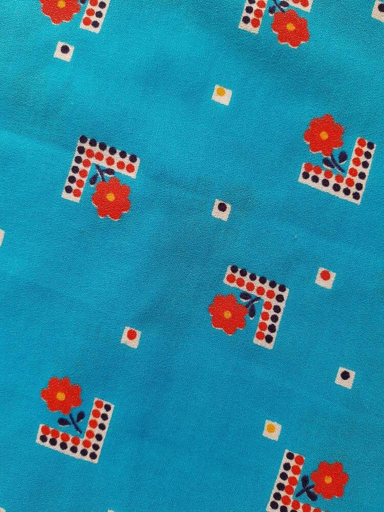 Vintage Cotton Crepe Fabric In Turquoise Geometric Floral Etsy