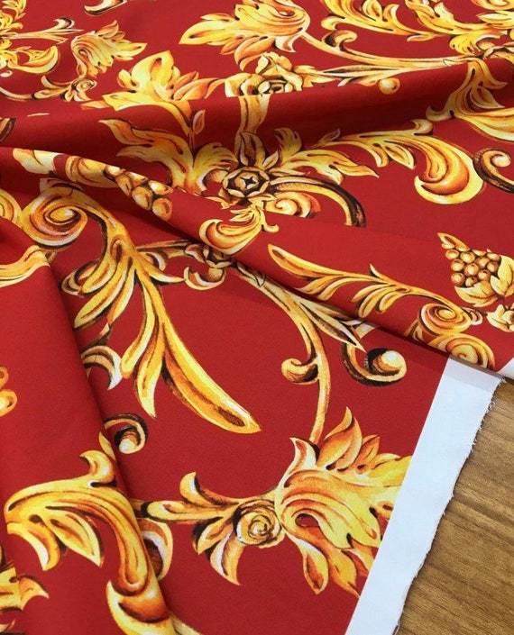 Red Crepe Gold Baroque Pattern Silky Crepe Fabric Luxe Etsy